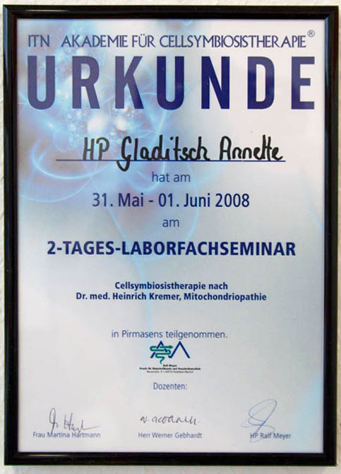 Mein besonderer Dank gilt Herrn Dr. med. Heinrich Kremer, dem Begründer der Cellsymbiosistherapie®, der mir eine neue Betrachtungsweise darlegt, warum der Körper mit Krankheit reagiert. Das Ganze wird mit Laborparametern untermauert, die für uns in der Therapie richtungsweisend sind.